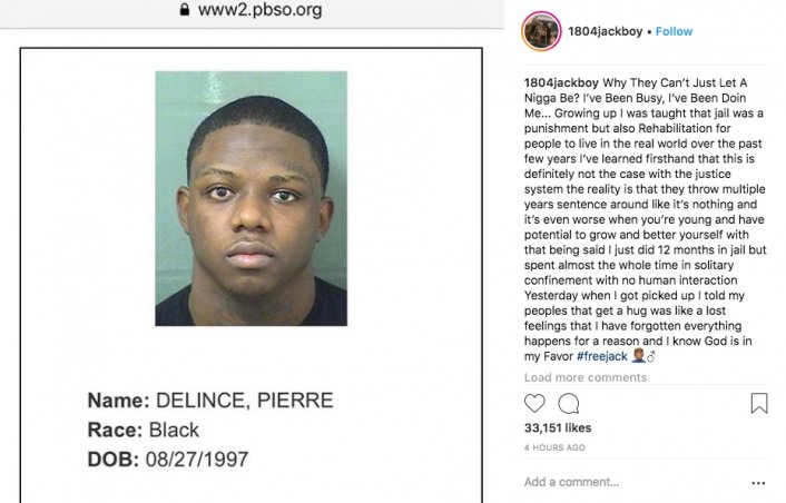 After only being released from jail for just a day, JackBoy, unfortunately, finds himself locked up again. He was booked at the Palm Beach County Jail on Friday, Aug 17 at 10:52 am on an out-of-state warrant. A message was left on JackBoy’s IG with his latest mugshot which read: